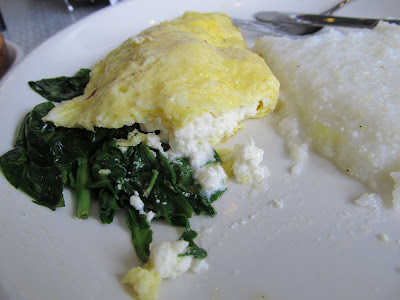 I was very happy with my omelet. The eggs were cooked to perfection. There was lots of salty feta. The freshly cooked spinach was also plentiful, and it all had great flavor. The grits needed some salt, but that was easily remedied.